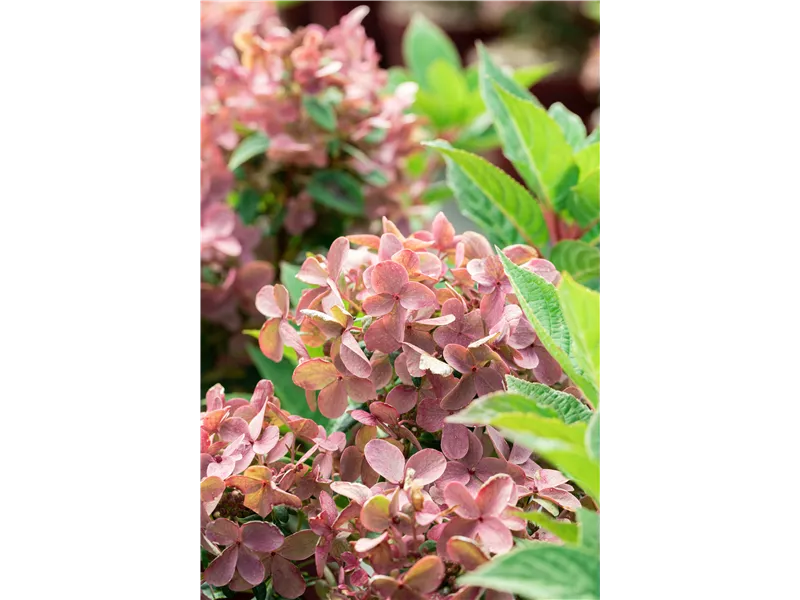 Die Rispenhortensie 'Polestar'® (Hydrangea paniculata) ist ein aufrechter Strauch, der rosafarbene, in Rispen angeordnete Blüten mit einem angenehmen Duft hervorbringt. Sie erscheinen von Juni bis September. Zudem trägt die Rispenhortensie 'Polestar'®, lanzettliche, mittelgrüne Blätter. An einem sonnigen bis halbschattigen Standort mit durchlässigem, humosem Boden erreicht sie gewöhnlich eine Höhe von ca. 1 m und wird ca. 80 cm breit.