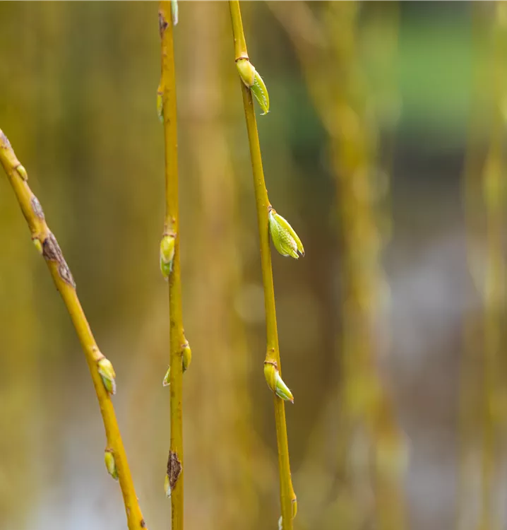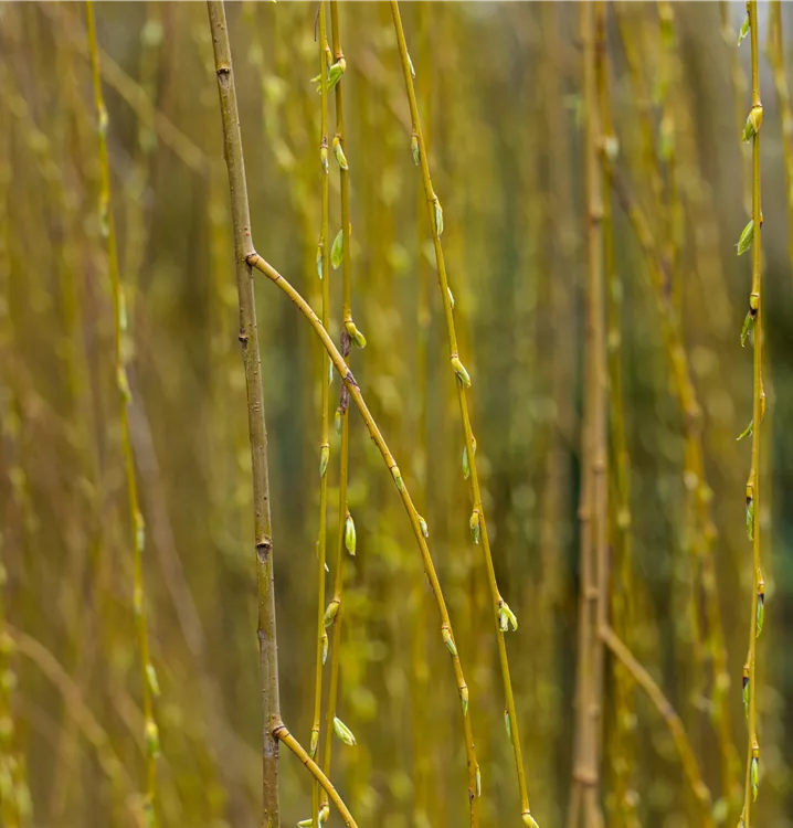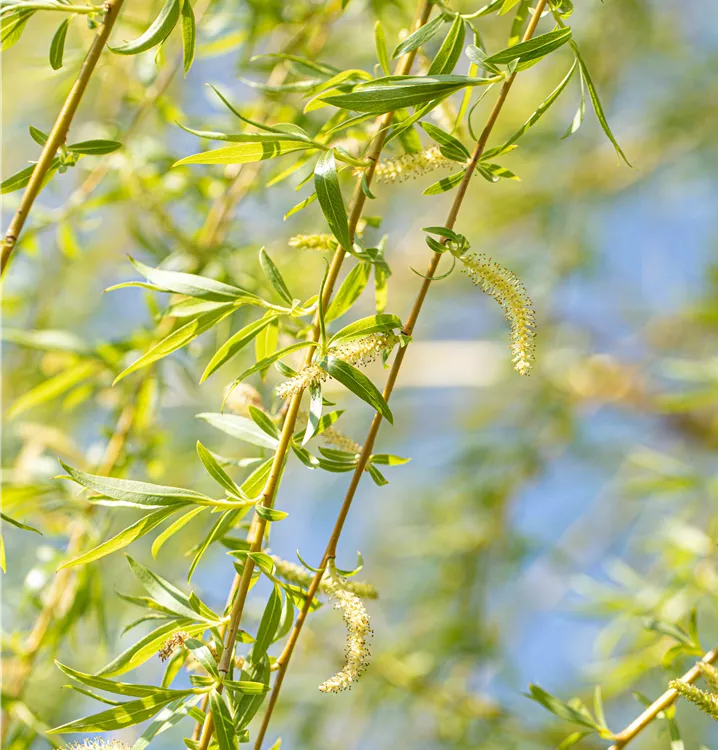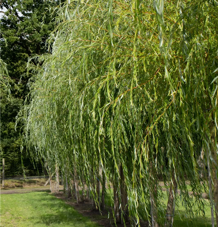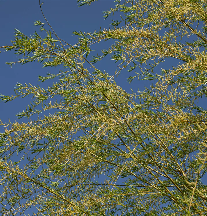Die Trauerweide 'Tristis' (Salix alba) ist ein hängender, malerischer Baum, der gelbe, in Kätzchen angeordnete Blüten hervorbringt. Sie erscheinen von April bis Mai. Aus diesen gehen weisse Früchte hervor. Zudem trägt die Trauerweide 'Tristis', behaarte, lanzettliche, mittelgrüne Blätter. Der gelb-grüne Austrieb ist ebenso ein interessanter Anblick. Ihre Rinde ist grau, tiefrissig. An einem sonnigen bis halbschattigen Standort mit kalkhaltigem, nährstoffreichem Boden erreicht sie gewöhnlich eine Höhe von ca. 20 m und wird ca. 20 m breit.